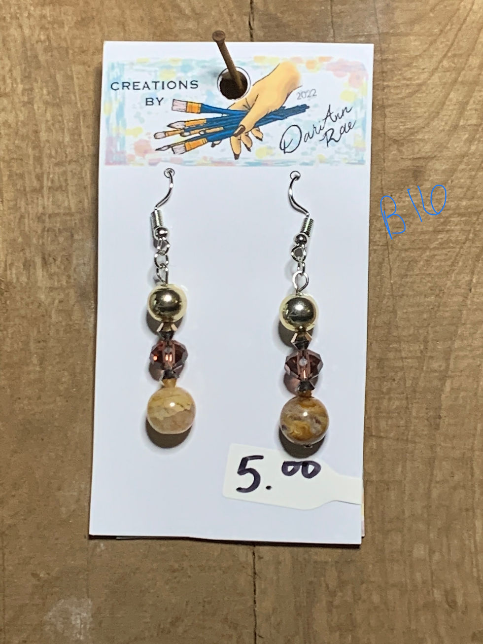 Tan Stone and Gold Dangle